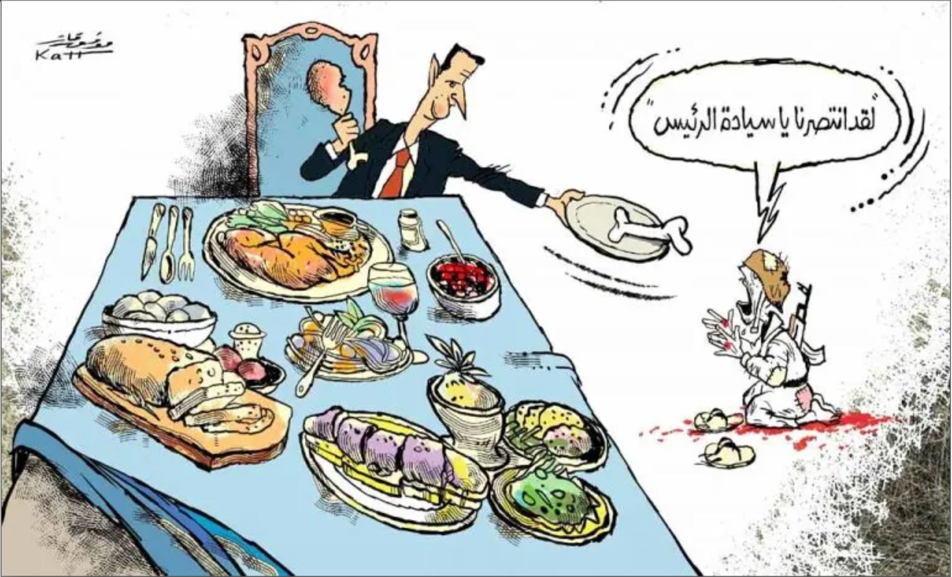 = رسام الكاريكاتير في سورية يحاول قول الحقيقة بدهاء وبشكل غير مباشر، وحين يكون خارج دائرة تسلط أجهزة القمع، يرسم بحرية ولا يخاف من تناول كل الرموز السياسية، ويتخطّى كل التابوهات الاجتماعية والدينية والسياسية.