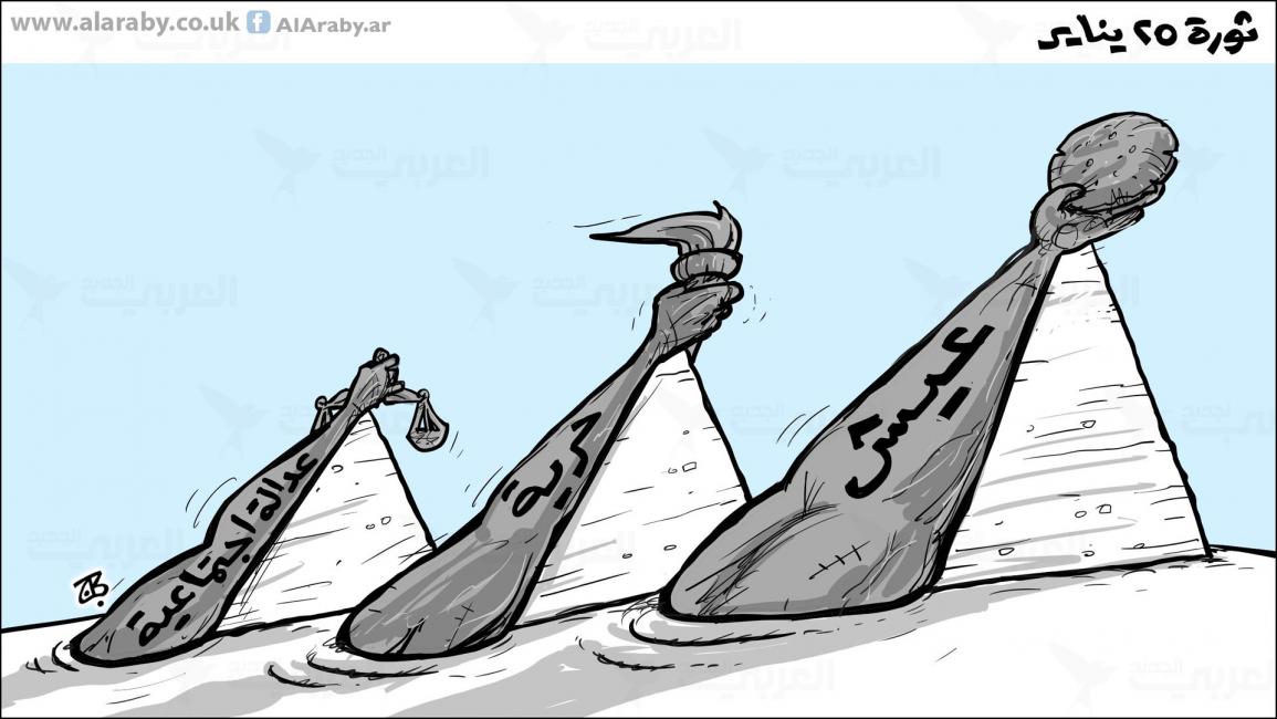 تنقسم تداعيات “يناير” إلى شقين متناقضين: أولهما خضعت له القطاعات المجتمعية غير المسيَّسة التي وقفت على الحياد في يناير، علّها تُحقق مستوى معيشةٍ أفضل وحياة أكثر آدمية. وقد أصابها إحباط وخيبة أمل من إمكانية حدوث تغيير جذري، بل واعتبار أي محاولة للتغيير مدعاة للخراب والدمار لا أكثر. والثاني موقف منتفعي كل الأزمان وحواريي النظم الحاكمة بكل الألوان. وهم يعيشون منذ الثورة حالة تحفز شديدة وتربّص بأي بادرة أو حتى مجرد تفكير نحو التغيير الجذري.