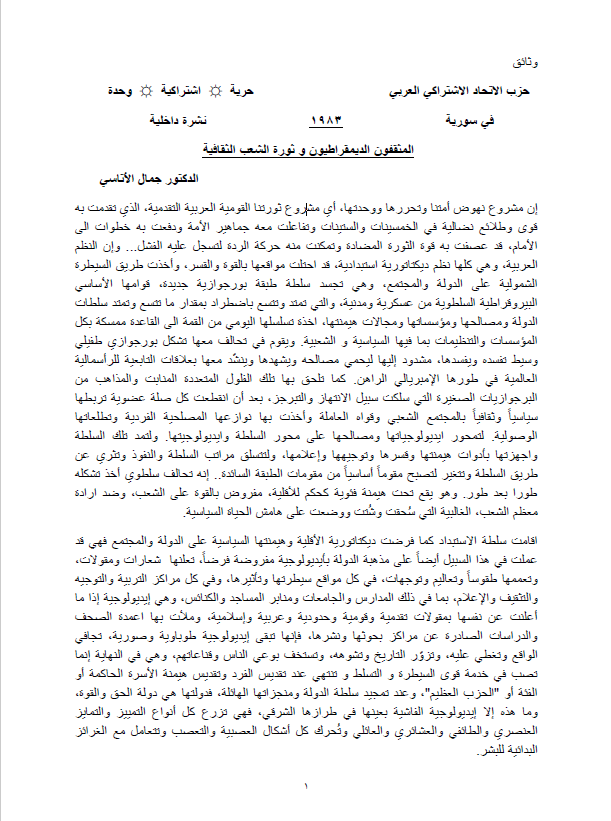 نستعير هذا العنوان من مقالة للراحل جمال الأتاسي في الذكرى الثانية والعشرين لرحيله-التي صادفت 30 آذار- هذه المقولة التي أكد عليها مراراً وتكراراً فـ” طريق الحل هو الارتباط بالثورة الثقافية، لأن الثورة الثقافية هي معرفة نقدية تحيط بالواقع من كل جوانبه ولا بد لها في حركة نقدها أن تتناول كل مقوماته وقواه “.
