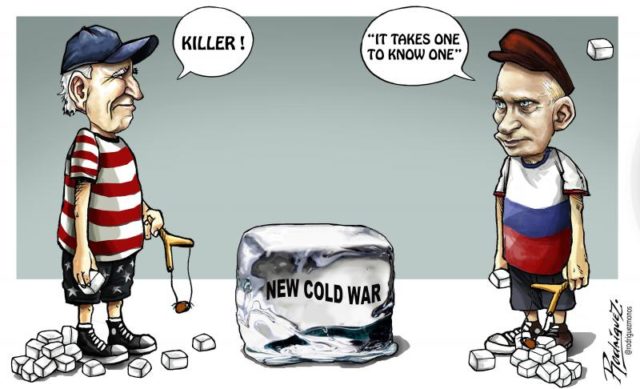 اتهم الرئيس الأميركي جو بايدن نظيره الروسي؛ زعيم قوة عظمى مسلحة نووياً؛ الرئيس فلاديمير بوتين بارتكاب “إبادة جماعية”، واصفاً إياه بـ”مجرم حرب.. يجب أن لا يبقى في السلطة”. فيما صرح وزير الدفاع الأميركي، لويد أوستن، أن بلاده تسعى الآن إلى “إضعاف روسيا.. بهدف شلّ قدراتها ومنعها من تهديد جيرانها”. أما وزيرة الخارجية البريطانية، ليز تروس، فقد ذهبت إلى حد القول إن الحرب في أوكرانيا “هي حربنا نحن”.