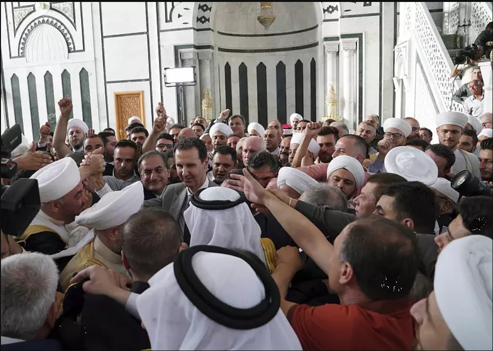 وبعد هذا النفق المليء بالنكبات والآلام جاء الأسد بغطرسته المعهودة، لزيارة حلب وكانت الزيارة لافتتاح المحطة الحرارية التي قامت بصيانتها شركة إيرانية ثم الصلاة في مسجد ابن عباس بجانب الأمن العسكري في حلب أي عملياً في الأمن العسكري، وهي رسالة داخلية جزء منها لنفسه وغطرسته وهو أنه ما زال الرئيس وأنه انتصر وهو الذي كان يدمر حلب بالبراميل ويقول لهم حلب في عيوني!
