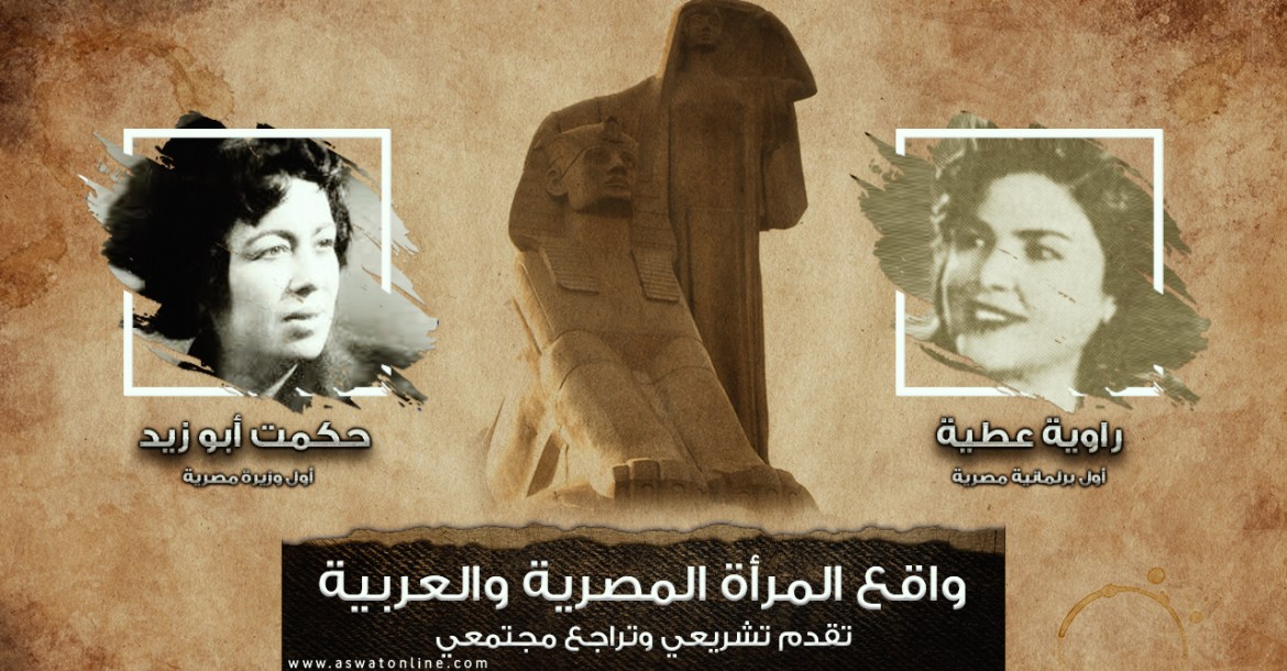 تمثل أول حضور واضح للمرأة العربية في الفضاء الاجتماعي العام في خروجها للمشاركة في ثورة 1919 في مصر التي سرعان ما تلتها ثورات شبيهة في العديد من المجتمعات العربية الأخرى.. تمكنت المرأة بعد ذلك من انتزاع حق الالتحاق بالتعليم، ثم حق العمل، ولم يكن من المستغرب بعد ذلك أن نجد النساء يطالبن بالحق في الإدلاء بأصواتهن في الانتخابات إلى جانب المطالبة بحق الترشح والالتحاق بالبرلمان، وبعد رحلة طويلة من النضال، يأتي دستور 1956، ليستجيب لمطالب المرأة المصرية، فتبادر ثمانية من النساء المصريات، بالترشح لبرلمان 1957لأول مرة، تنجح اثنتان منهن هما راوية عطية في القاهرة، وأمينة شكري في الإسكندرية، ومن جانب آخر يتم تعيين الدكتورة حكمت أبو زيد كأول وزيرة للشئون الاجتماعية في مصر.
