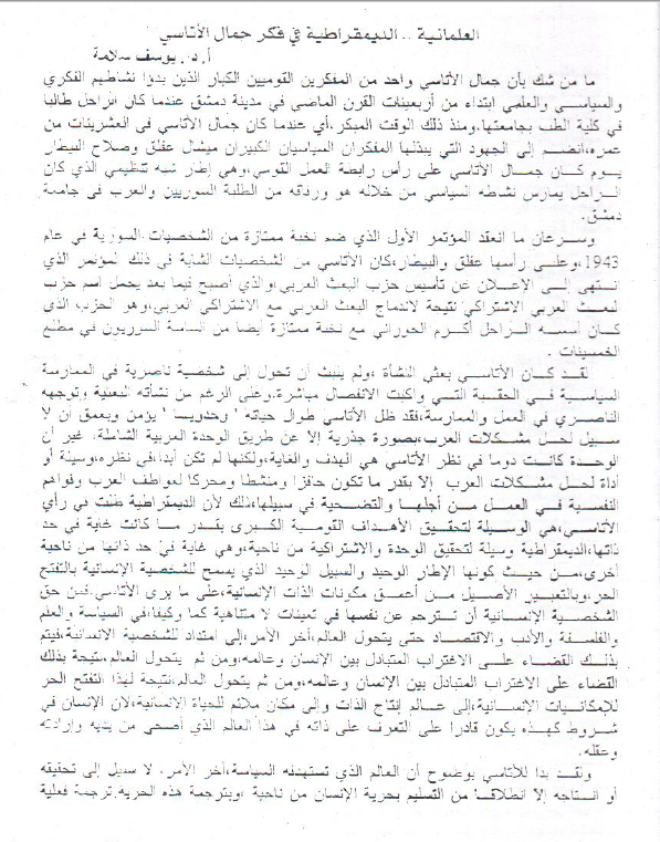 (**) نص المحاضرة التي قدمها الدكتور ’’يوسف سلامة‘‘ في منتدى جمال الأتاسي للحوار الديمقراطي في دمشق بتاريخ 7 نيسان/ مايو 2004.
