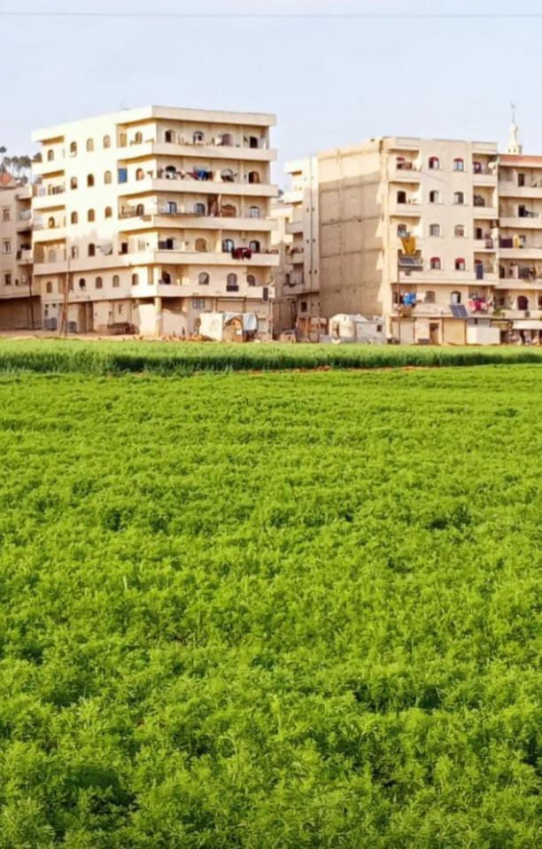 بعد سيطرة نظام أسد على مساحات واسعة من الأراضي الزراعية الخصبة في ريفي حماه وإدلب وحصر ملايين المهجرين في بقعة جغرافية ضيقة تفتقر إلى المساحات الخصبة لإنتشار الجبال في أغلب مناطقها، الأمر الذي يوجب على القوى المسيطرة البحث عن أفضل الحلول للإستفادة مما تبقى من هذه الأراضي الزراعية ولكن هل يحدث هذا الأمر؟ للأسف محزن ما يحدث لأراضي الشمال، الزحف العمراني في سباق محموم مع المخيمات لإلتهام ما تبقى لدينا من أرض زراعية، رغم الكثافة السكانية الهائلة في الشمال الغربي من سورية، إثر حملات التهجير القسري، وندرة الأراضي الزراعية فيه، إلا أنّ الأراضي الزراعية تُقضم، أينما وجهتَ نظرك ترى الخيام في السهول وعلى ذرى الجبال وبين الأشجار وفوق الهضاب، حتى سكة القطار الوحيدة التي تعبر المحرر باتجاه الساحل لم تسلم من الخيام بل وجدها الناس ملائمة لبناء خيامهم!