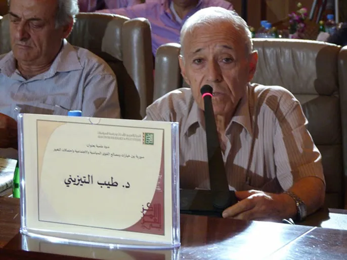 ولكنّ هذه الهفوات للمفكر الطيب تيزيني، قبيل اندلاع الثورة السورية، لم تمنعه من الانخراط في فعالياتها السلمية، مثل مشاركته في اعتصام أهالي معتقلي الرأي والضمير أمام وزارة الداخلية، في 16 آذار/ مارس 2011. كما سعى، ضمن حدود إمكانياته، لإيقاف المقتلة السورية، والوصول إلى حل سياسي، يخرج سورية من الكارثة التي حلّت بها. ومن أبرز مواقفه المعروفة، في دعمه للثورة السورية، ما قاله في اللقاء التشاوري، الذي دعت له السلطة في 10 تموز/ يوليو 2011، حيث رفض ادعاءات السلطة بـ ” أنّ المؤامرة خلف ما يجري “، وطالب بتفكيك الدولة الأمنية.