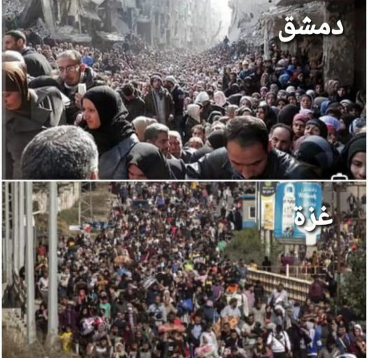 كل ذلك وما يشبهه نجده اليوم على قارعة الطريق، يمارس ضد شعب غزة المكلوم، والمعذب، ولو وقفنا عند يوميات ما يجري في غزة لوجدنا ذلك الشبه الكبير، والحالة المتماثلة، التي تكاد تتطابق في مظاهرها وكنهها، ومنها الإجرام الموازي والمتشابه، فمن دمار البنية التحتية للمساكن في غزة التي فاقت كل حد، واستخدام الأسلحة الفوسفورية والنابالم المحرمة دوليًا، وقصف المشافي والمراكز الصحية، وأيضًا مدارس الأونوروة الأممية، ثم التهجير القسري للفلسطينيين إلى جنوب غزة، والمحاولة الجادة والمستميتة لتهجيرهم خارج قطاع غزة، إلى سيناء أو غيرها، حسب ماتود وتريد إسرائيل، وقطع الماء والكهرباء والنت والغذاء والدواء، وقصف الأفران ومستودعات الحبوب، كل ذلك كان قد عاشه السوريون يوميًا في سورية، بل مازالوا يعيشونه يوماً إثر يوم، على يد أدوات الإجرام الأسدي بمساعدة معلنة وواضحة من الروس والإيرانيين اللذان يحتلان سورية.