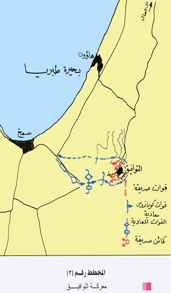 ملاحظة: معركة التوافيق، وقعت في 31 كانون الثاني/ يناير 1960 تحت قيادة العقيد الركن “جادو سعيد عز الدين” قائد الجبهة السورية أثناء الوحدة بين مصر وسورية.