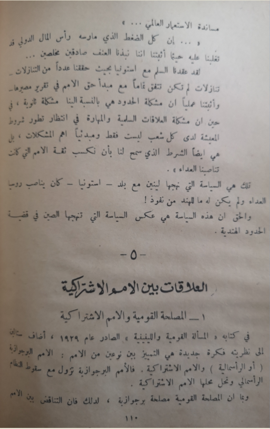 إن مصالح الأمم ليست متماثلة تماماً في ظل الاشتراكية. والخلاف بين الأمم ممكن.. وموضوعه توزيع الانتاج الاجتماعي.