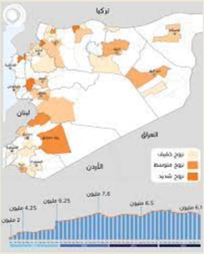 إن التغيير الديموغرافي مرتبط إلى حد كبير بالتهجير القسري للسوريين، فعدد المهجرين اليوم يقدر بحوالي 13 مليوناً بين نازح داخلياً ولاجئ خارج الحدود.