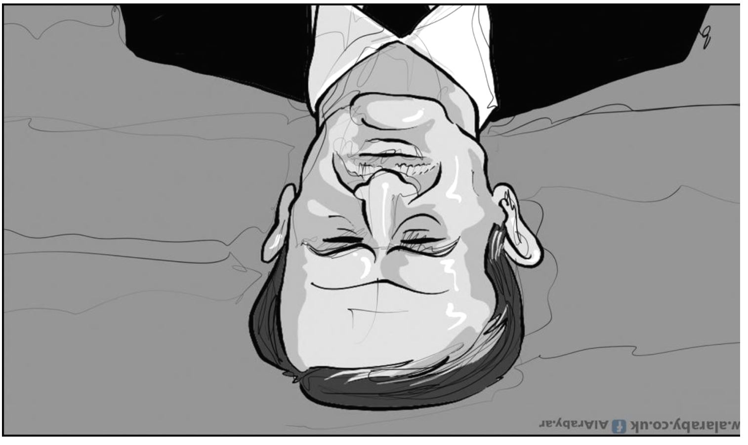 أبو المراديس: وهادا الشي، في الحقيقة، خلى القفلة تبع القصة تكون ذروة في التراجيكوميديا، فاللي صار، بكل بساطة، إن أهل الرقيب أول باعوا بعض ممتلكاتهم، وبلشوا يشتغلوا بالقضية، ووين ما دخلوا يدفعوا رشاوى، لحتى قدروا يخلصوا ابنهم من مشفى المجانين. وبعدما طلع بمدة قصيرة، صارت تتسرب أخبار من داخل بيته بتقول إنه أولاده كتير عم يعانوا من طباعه. حتى إنه ابنه الكبير طلع مرة من البيت وصار يصيح بأعلى صوته: يا حافظ الأسد، الله يلعنك، طالما أخدت أبونا وجننته، ليش ما تركته عندك؟ آ؟ ليش ما تركته عندك؟!!