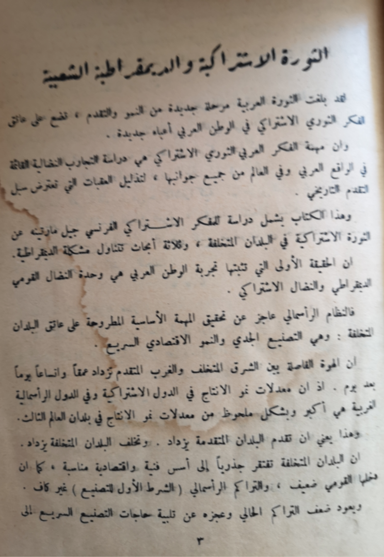 لقد بلغت الثورة العربية مرحلة جديدة من النمو والتقدم، تضع على عاتق الفكر الثوري الاشتراكي في الوطن