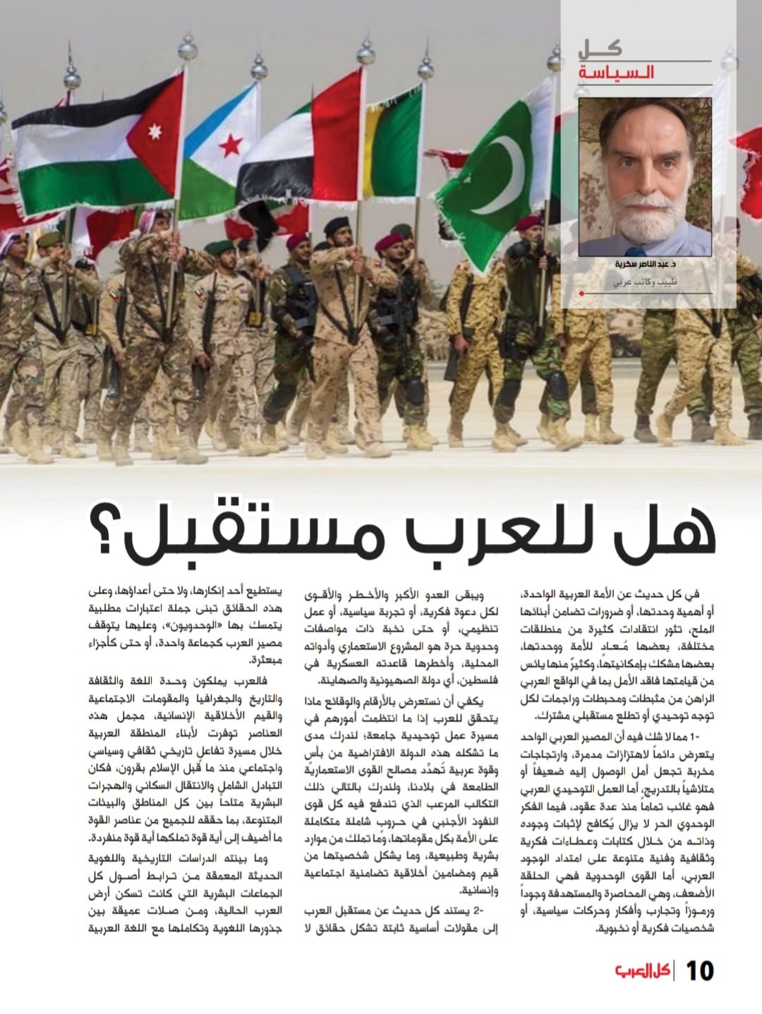3 – جميع هذه الأمور لا تحتاج إثباتا وليست وجهات نظر بل حقائق تاريخية ثابتة ومنها يتأسس وعي عربي واحد وثقافة واحدة ومصير نفسي وعقلي واحد..وحيثما تكون ثمة أخطار واحدة تهدد منطقة محددة بكل من فيها وما فيها ؛ فذلك بيان لها كوحدة جغرافية وبشرية واحدة ولها وحدة مصيرها ومستقبلها وقدر عال من المصالح التي تربطها ببعضها..
