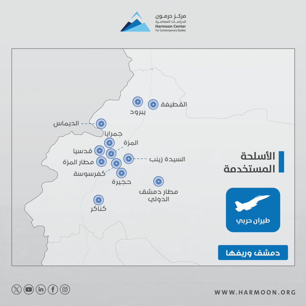 تغطي المصورات والأشكال التالية الضربات الإسرائيلية في سورية، منذ 7 تشرين الأول/ أكتوبر 2023 حتى 7 تموز/ يوليو 2024، بحسب رصد مركز حرمون للدراسات المعاصرة.