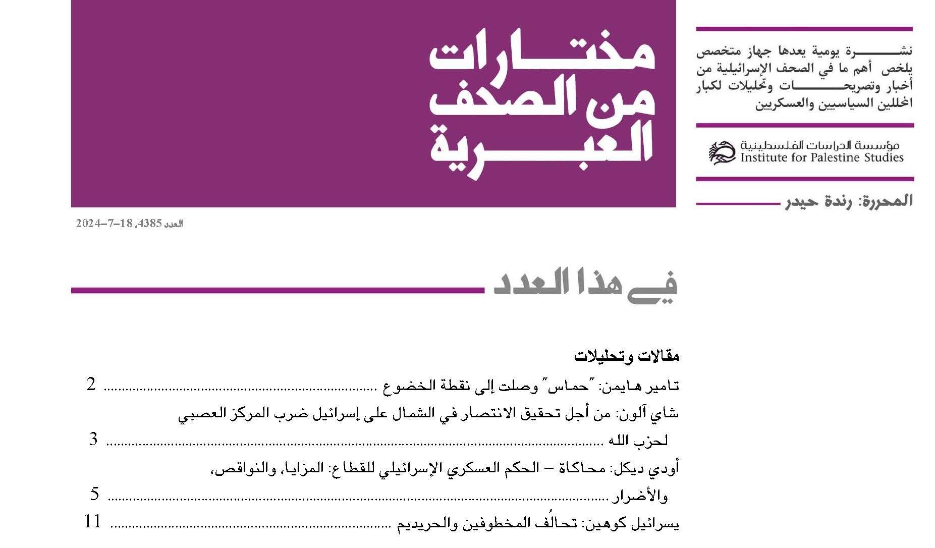 المصدر: مؤسسة الدراسات الفلسطينية العدد 4385