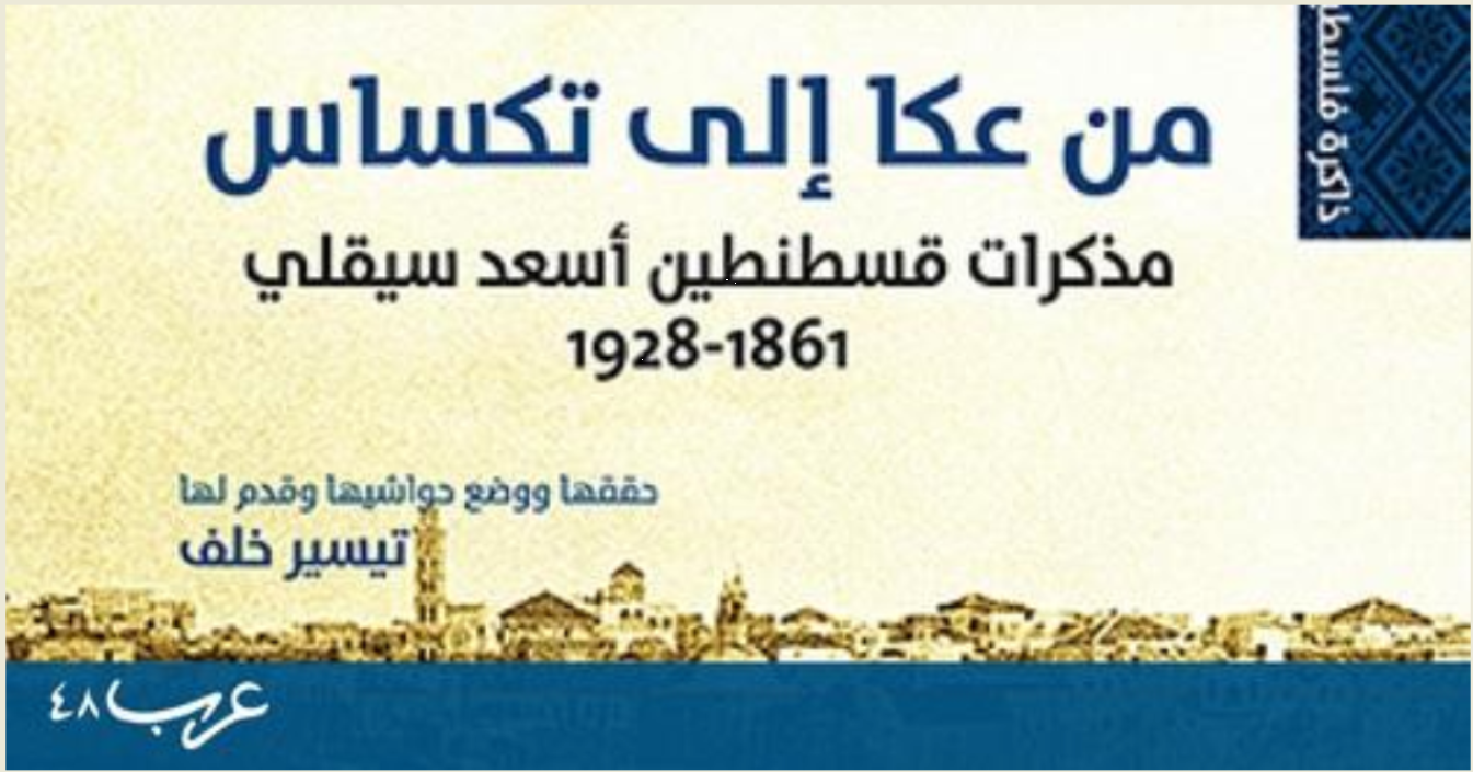 أصدر المركز العربي للأبحاث ودراسة السياسات مؤخرا مذكرات ابن مدينة عكا قسطنطين سيقلي… أهميتها في أنها من أبكر المذكرات التي كتبت في تاريخ فلسطين الحديث، حيث تناولت مظاهر من حياة عكا والجليل ومدن الشمال الساحلي في أواخر القرن التاسع عشر. عن بعض مما ورد فيها.