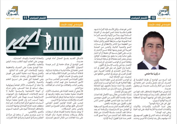 ولا شك أن السياسات الأكثر انفتاحاً وموثوقية سوف تساعد في هذا المسعى. ونحن ندرك أن البيئة الاجتماعية والسياسية الحالية لا تدعم الإصلاحات الديمقراطية، وأن التوجهات الاستراتيجية ليست مهيأة على النحو اللائق، ولهذا السبب لابد وأن تخضع عملية صياغة السياسات لتدقيق الرأي العام والخبراء. نحن أمام منعطف جديد تحتاج القيادة في مواجهة التحديات والمخاطر المحدقة اليوم على الصعيد السوري والعربي والإقليمي.