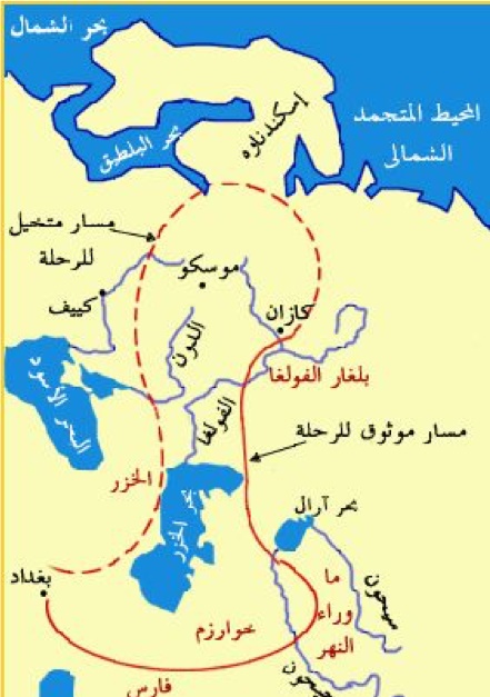 خرجت القافلة من بغداد مروراً بالمدن الفارسية ومنها إلى نهري «جيحون» و«سيحون»، وصولاً إلى خوارزم وبلاد الأوغوز التركية.