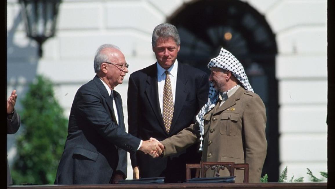 وقَّع الزعيم الفلسطيني الراحل، ياسر عرفات، ورئيسُ الوزراء الإسرائيلي الأسبق، إسحاق رابين، ”اتفاقَ إعلان المبادئ الفلسطيني الإسرائيلي.. ”، في البيت الأبيض في واشنطن، بعد شهور من التفاوض في العاصمة النرويجية بين منظّمة التحرير وإسرائيل. كان الاتفاق لحظة فاصلة في مسار القضية الفلسطينية، بالنظر إلى ما ترتّب عليه من نتائج وتداعيات في الإقليم.
