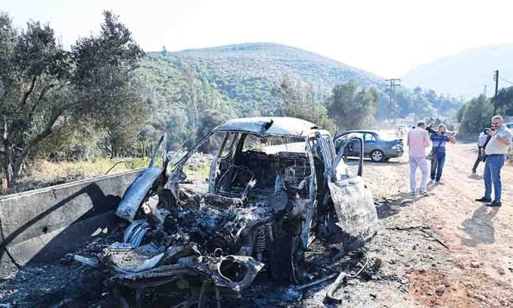 يؤكد مصدران محليان من مصياف أن أول ثلاثة قتلى سقطوا في الهجوم الإسرائيلي من أل مرهج هم مدنيون لا عسكريين أو أمنيين أو متطوعين في أي من القوات الرديفة، يعملون بتجارة الأحذية ويعرف عن العائلة طيب السمعة، وفي تفاصيل مقتلهم، يقول مصدر مقرب من العائلة إن منزل العائلة يقع في الطرف الجنوبي للمدينة على الطريق الواصل إلى منشأة البحوث في المنطقة المعروفة محلياً بحير عباس وهي قريبة من الموقع، وأضاف أنه بعد القصف للمواقع في المدينة نزل الشاب عزيز من بيته إلى السيارة ولحقه والده احمد مرهج وعمه نزار في محاولة التوجه للموقع المستهدف وإسعاف الجرحى وما أن دارت السيارة واشغل اضوائها وقبل تحركها، قصفت من طائرة مسيرة أمام المنزل قبل أن تتحرك. وحصلت «القدس العربي» على شريط مصور للسيارة المنفجرة والتي احترقت بشكل نهائي وهي أمام المنزل. ويضيف المصدر أن شدة الانفجار «جعلت أجساد الشهداء الثلاثة تتطاير قطعا في المكان». هذا وتعرف العائلة في مصياف بـ«بيت صبورة» نسبة إلى بلدة الصبورة في ريف سلمية شرقي حماة، وهي مسقط رأس الجد الأكبر. وتشير المصادر إلى ان عدد كبيرا من القتلى هم من الشبان الساهرين في أحد المطاعم القريبة من حير عباس وتوجهوا بهدف المساعدة ونقل الجرحى، إلا ان الطيران المسير الذي بقي فوق محور الإنزال قصف سياراتهم وقتلوا (لم تتحقق «القدس العربي» من هوياتهم حتى كتابة التقرير).