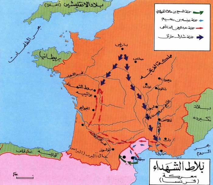 وفي النهاية وضعت معركة بلاط الشهداء عام 732م حداً تاريخياً فاصلاً للمحاولات الجريئة للجيش المسلم لتوسيع السيطرة نحو بلاد الغال . وبعد ذلك أدرك شارل مارتل حاكم الإمبراطورية الميروفنجية وخلفاؤه خطر التمدد العربي- الإسلامي فبدء بتحصين المواقع الحدودية قرب سلسلة جبال البيرينية, وأنشأ شارلمان ما يعرف بالحزام الدفاعي على طول جبال البيرينية الفاصلة بين فرنسا واسبانيا والمكون من سلسلة من الحاميات سمي بـ “ماركا دي سبانكا” وبدون شك فقد نظرت الإمبراطورية الميروفنجية الى دولة اوسترياس كحامية بوجه الجيوش المسلمة الأندلسية في الشمال الغربي للأندلس .