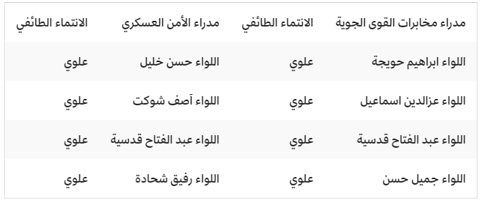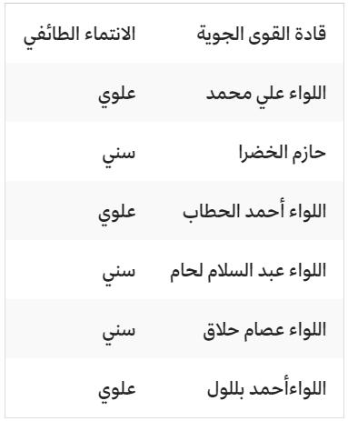 الجدول 6- قادة القوى الجوية والدفاع الجوي في عهد بشار الأسد (2000-2011) وفق الانتماء الطائفي: