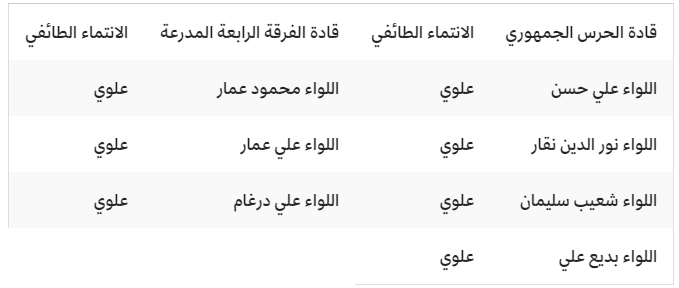الجدول 4- قادة الحرس الجمهوري والفرقة الرابعة المدرعة في عهد بشار الأسد (2000-2011) وفق الانتماء الطائفي:
