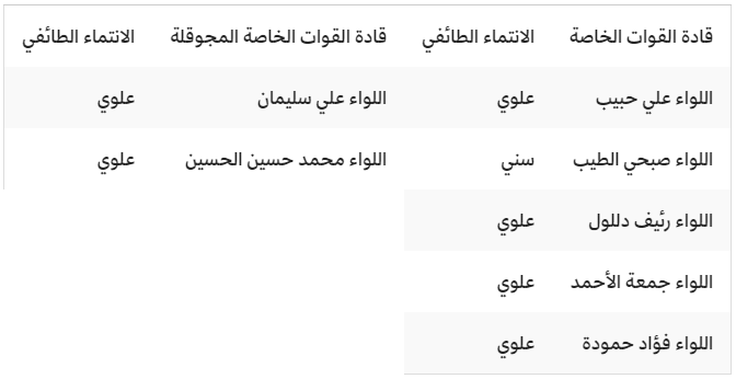 الجدول 7- القادة الفرعيين في القوات الخاصة عشية ثورة 2011 وفق الانتماء الطائفي:
