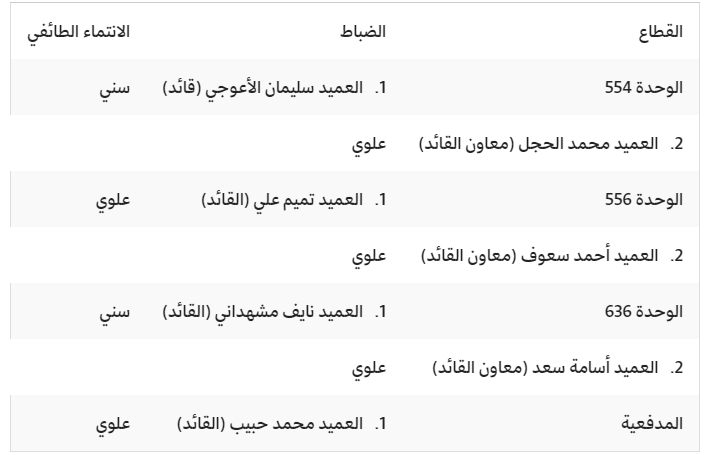 تحديدا، التحيز الطائفي واضحٌ بشكلٍ خاص في الحرس الجمهوري والفرقة الرابعة المدرعة والمخابرات الجوية والأمن العسكري. وأن تكون تلك الوحدات صاحبة امتيازات هو أمرٌ غير مدهش إذا فهمنا أهميتها لحماية النظام، لكن طبيعتها الطائفية تُفاقم الاستياء بين غير العلويين، وبكلماتٍ أخرى لنقيبٍ انشقّ عام 2013: «مسموحٌ للسنّة في القوات المسلحة أن يشغلوا فقط المراكز التي لا تهم العلويين، المكان الوحيد الذي أعرفه في القوى الجوية حيث يوازي عددُ السنة عددَ العلويين، وربما يفوقه، هو مطار التيفور العسكري القريب من الحدود العراقية. تبعدُ هذه القاعدة 90 كم عن حمص بعيداً في الصحراء، إنها واقعةٌ في أكثر الأماكن عزلةً، في مناطقَ سوريةٍ منسيةٍ حتى من الله، أي أنها مهجورةٌ بالمطلق، هناك حيث يُرسل السنّة كي يخدموا في القوى الجوية. وما هو صحيحٌ حول القوى الجوية صحيحٌ أيضاً حول سلاح المشاة، الأكثر خطورة من وجهة نظر أمن النظام»25.