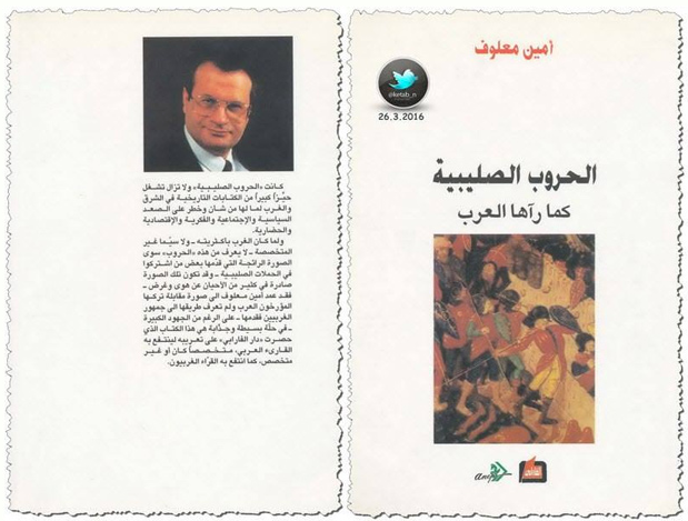 في كتاب (الحروب الصليبية كما رآها العرب) للكاتب المبدع والمتميز «أمين معلوف»؛ وهو عبارة عن رواية وسردية تاريخية يوثقها بالمراجع العربية وأحيانا بالمراجع الأجنبية .
