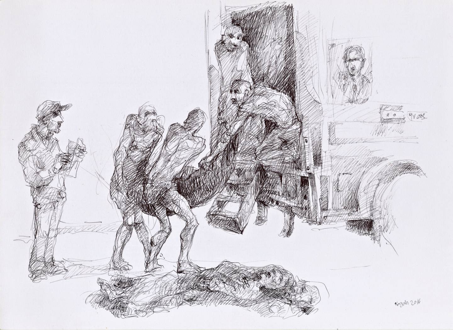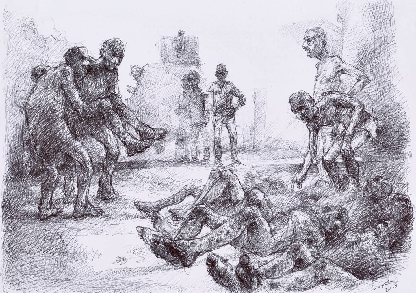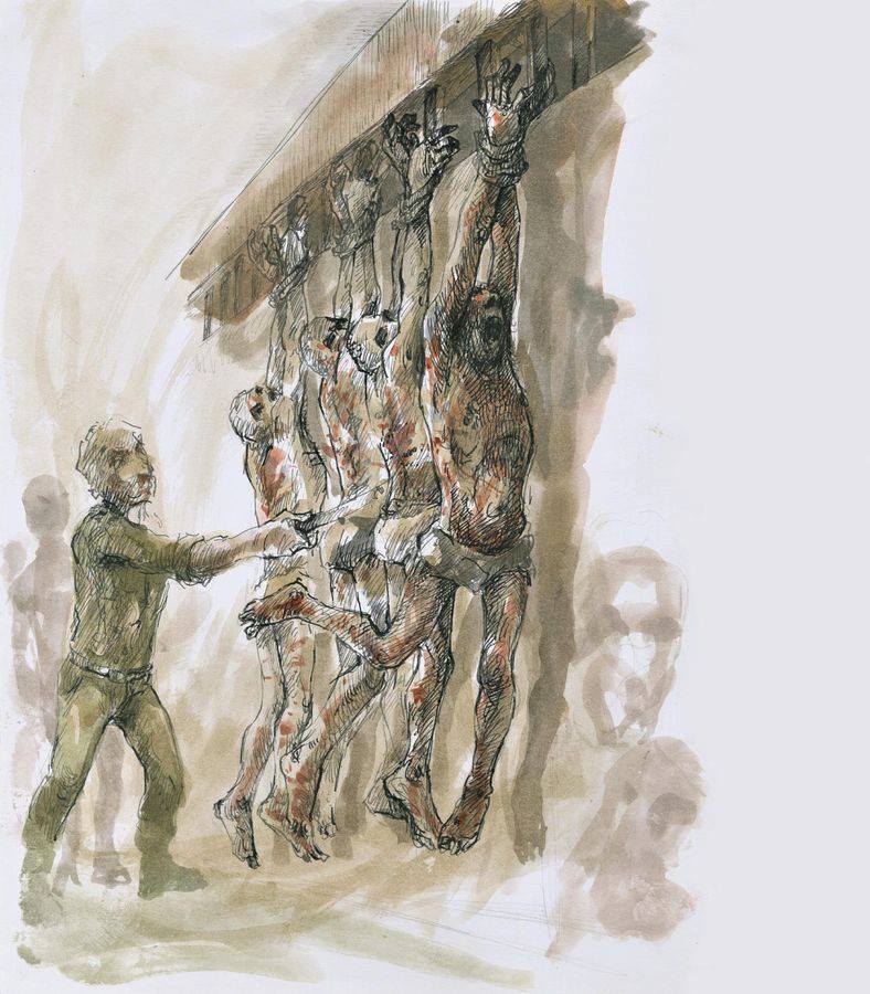لم تكتف “ليبراسيون” بسرد تجربة «نجاح البقاعي» تلك، بل أرفقتها برسوم خطها بنفسه، لتحاكي ريشته تجربة الاعتقال تلك، من أساليب التعذيب التي ذاقها، إلى عملية “تحميل وإفراغ الجثث”.