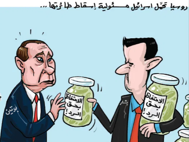 لفت نظري مقال غريب لكاتبه “بشر نصور” من سورية ” يوجه فيه كلامه للحليف الروسي للنظام ويقول فيه: إننا لن ننتظر محتفظين بحق الرد على اعتداءات إسرائيل للابد… ولم نشتر السلاح المتقدم منكم لنعرضه في معرض دمشق بل لنستخدمه للحفاظ على سيادتنا وندافع عن أرضنا، ومازالت إسرائيل تقصف ونحن نحتفظ بحق الرد… وطبعًا باقي المقال لا يهم فالفكرة الرئيسية هي الإيحاء للقارئ بان الحليف الروسي هو من يمنع النظام من الرد على إسرائيل بالأسلحة الروسية النوعية التي اشتريناها بـ حر مالنا “.